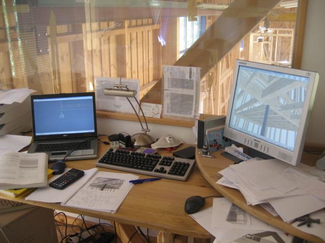 Nach dem gemeinsamen Festlegen aller erforderlichen Parameter für Ihr Bauvorhaben bzw. dem Messen auf der Baustelle erfolgt die zur Ausführung erforderliche Arbeitsvorbereitung mit Hilfe dieser Sofware. Neben der statischen Dimensionierung der erforderlichen Bauteile erfolgt die Zeichnung eines 3d Modells, welches für die Bearbeitung der Hölzer auf unserer Hundegger Abbundanlage erforderlich ist. Das Ansteuern der Anlage erfolgt durch direkte Datenübergabe vom Konstruktionsprogramm zum Rechner der Maschine.